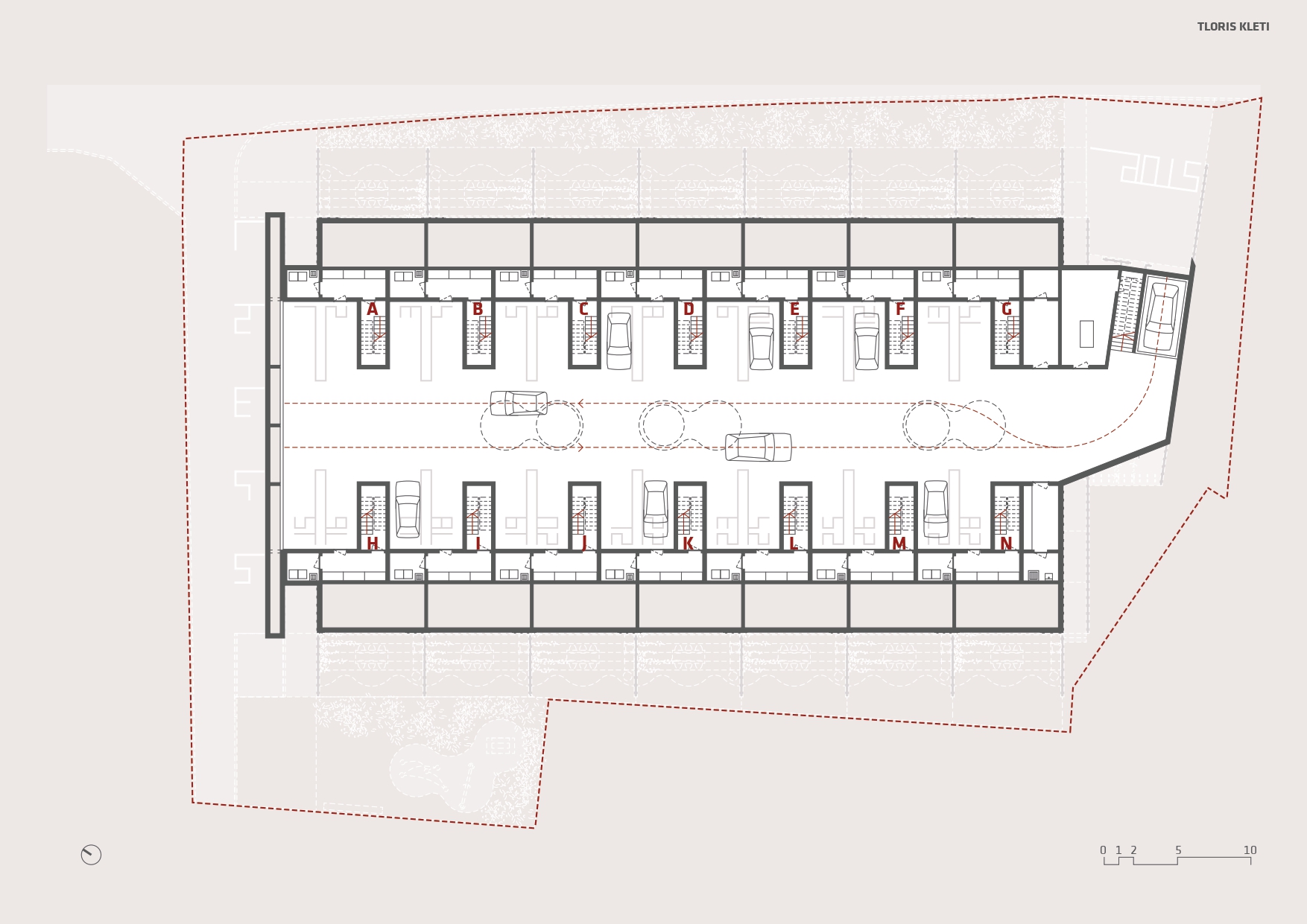 Za največje udobje ima vsaka hiša dva namensko urejena parkirna prostora in shranjevalni prostor. Ločeno stopnišče omogoča neposreden dostop do vsake posamezne hiše, kar zagotavlja zasebnost in varnost.